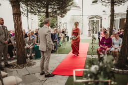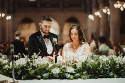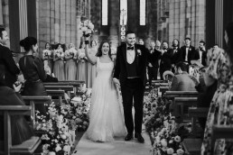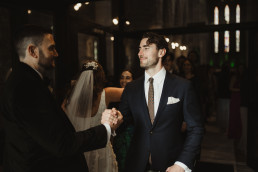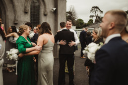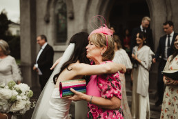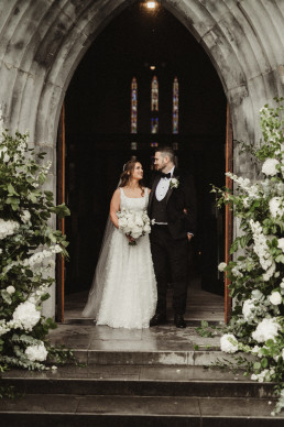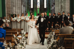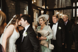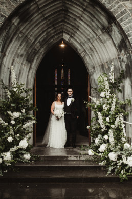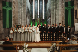 The ceremony at Killarney Cathedral was nothing short of breathtaking. Despite the steady rain, guests arrived smiling and umbrellas popped up like colorful blooms outside the grand stone structure. Inside, the cathedral’s high arches and stained glass windows provided a stunning, almost cinematic backdrop for their vows.