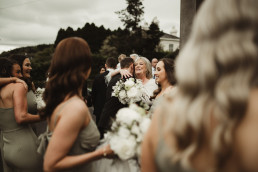 The rain stayed with us throughout the day, but it became part of the story, not an obstacle. Laura and Niall embraced it with such joy and ease, which is what made it so magical. However, we were lucky to get a break in rain for our portrait session in the misty Killarney National Park, and wow, did we get some stunning shots! 🙂