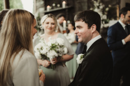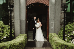 The ceremony at Killarney Cathedral was nothing short of breathtaking. Despite the steady rain, guests arrived smiling and umbrellas popped up like colorful blooms outside the grand stone structure. Inside, the cathedral’s high arches and stained glass windows provided a stunning, almost cinematic backdrop for their vows.