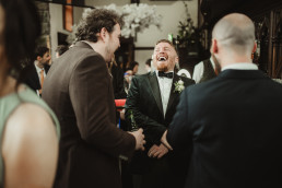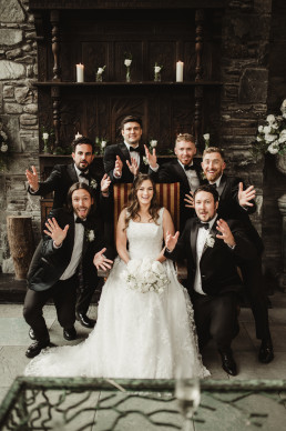 The rain stayed with us throughout the day, but it became part of the story, not an obstacle. Laura and Niall embraced it with such joy and ease, which is what made it so magical. However, we were lucky to get a break in rain for our portrait session in the misty Killarney National Park, and wow, did we get some stunning shots! 🙂