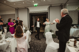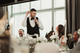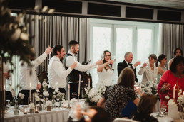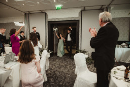 The rain stayed with us throughout the day, but it became part of the story, not an obstacle. Laura and Niall embraced it with such joy and ease, which is what made it so magical. However, we were lucky to get a break in rain for our portrait session in the misty Killarney National Park, and wow, did we get some stunning shots! 🙂