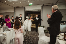 The ceremony at Killarney Cathedral was nothing short of breathtaking. Despite the steady rain, guests arrived smiling and umbrellas popped up like colorful blooms outside the grand stone structure. Inside, the cathedral’s high arches and stained glass windows provided a stunning, almost cinematic backdrop for their vows.